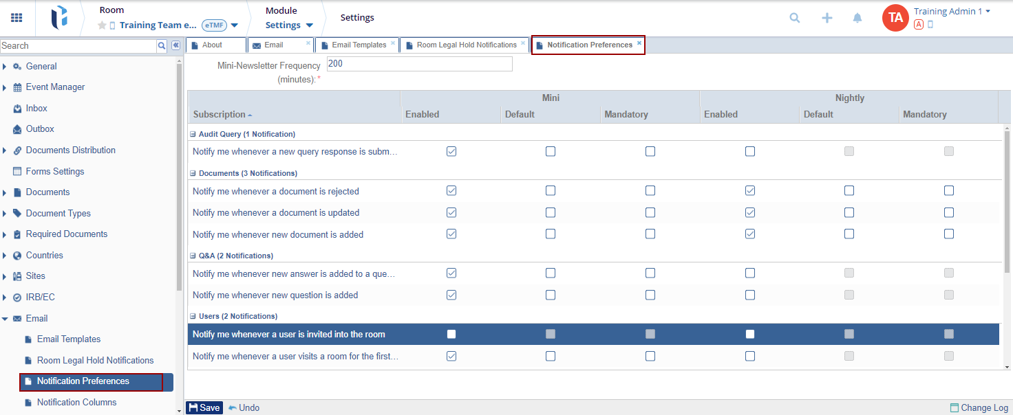 The Notifications Preferences section allows users to specify the email notifications they would like to enable for the study room.
