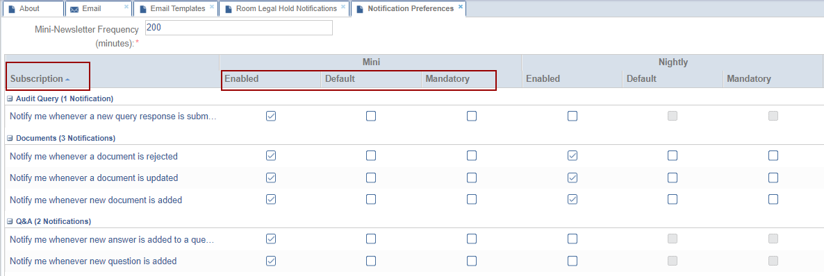 - Default: This subscribes all users to the related notification by default but with the possibility to unsubscribe.