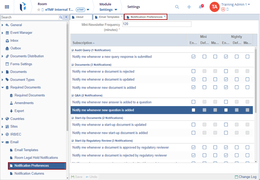 The Notifications Preferences section allows users to specify the email notifications they would like to enable for the study room.