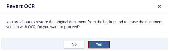 - To revert OCR, select the Revert OCR option from the Document Activities menu.
