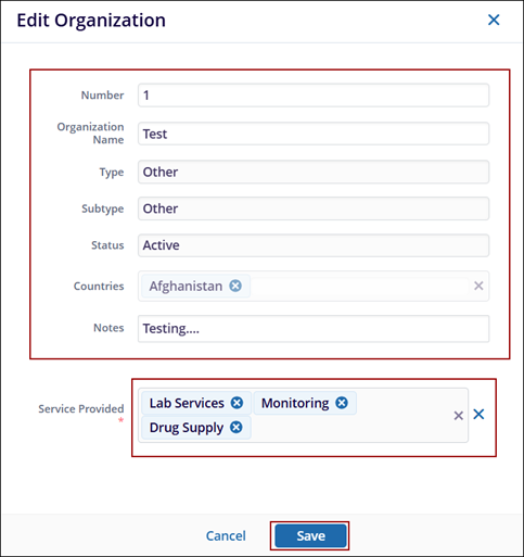 - Enter the relevant services in the Service Provided field from the available dropdown options.