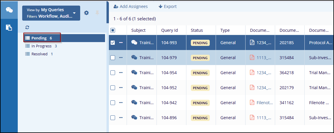 A Pending query refers to a request that has been raised but not yet addressed or responded to. It requires user action to review, respond, or move forward in the workflow.