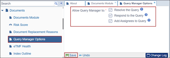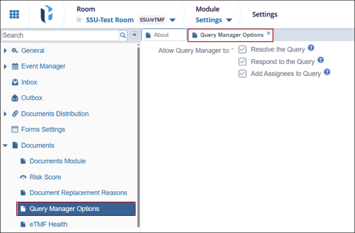 Query Managers in Trial Interactive are users with permission to view all QC Workflow-related queries in the room and provide assistance as needed. The specific actions a Query Manager can perform are determined by the settings configured here. By selecting the appropriate checkboxes, room administrators can grant Query Managers the ability to resolve queries and/or respond to queries assigned to any user.
