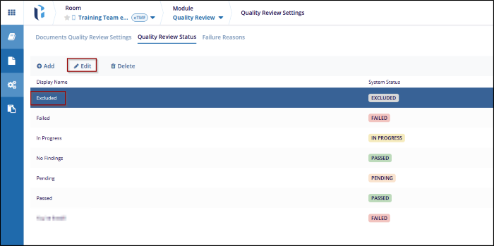 - Select the status from the list in the Display Name in the Quality Review Status tab.