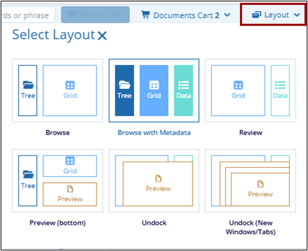 Users can select multiple documents and select ‘Add to Cart’ to add documents to the documents cart. Here users can perform multiple actions to the selected documents to the selected documents.