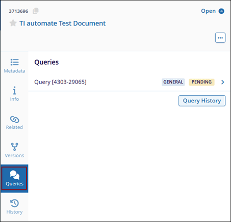 This tab is visible only if a query is assigned to the users. Users can perform all query-related activities from the metadata panel.