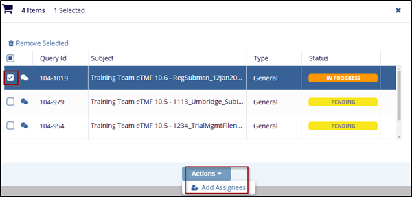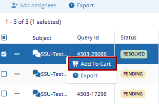 A Queries Cart allows users to collect queries for easier management. The Queries Cart helps streamline the process of handling multiple queries at once without repeatedly selecting them.