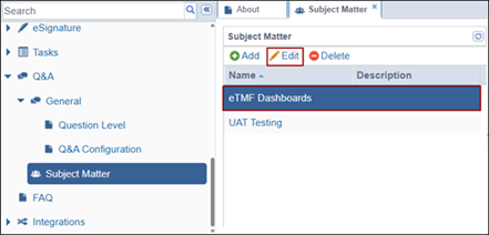 - The Subject Matters panel from which subject matter categories can be added, edited, and deleted.