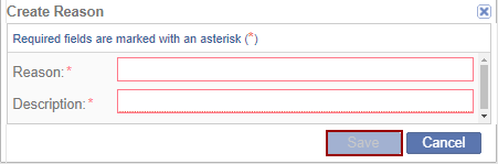 - Click Add to create new reasons. The Create Reasons pop-up window is displayed.