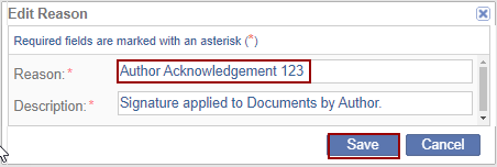 - The ‘Edit Reason’ pop-up window is displayed. Edit the details as required and click Save.
