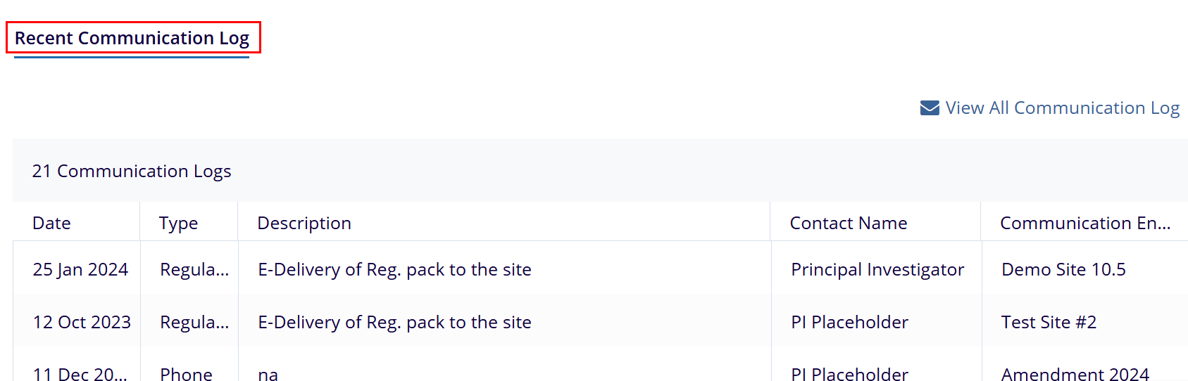 Clicking the View All Communication Log button redirects the user to the Communication Log page of the SSU module.
