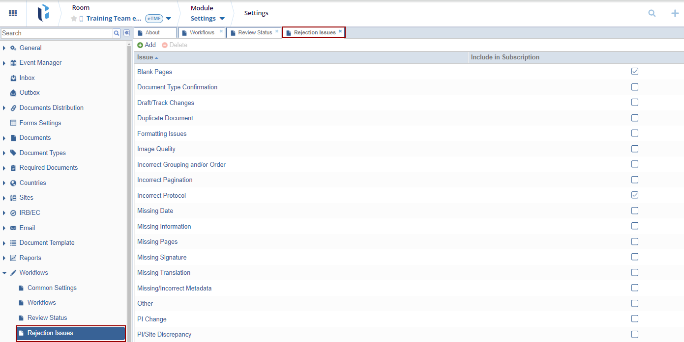 - Select the issue and click Delete. The selected issue will disappear from the list.