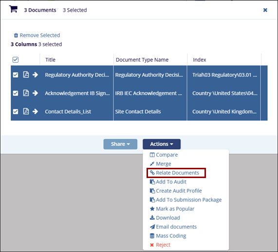 - Click on the Save button to complete the related documents process. A notification related is displayed in the top right corner of the screen.