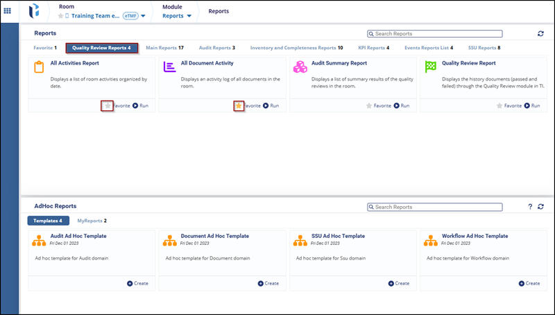 - Navigate to the Reports tab, and select any report from the below options (Favorite, Quality Review Reports, Main Reports, Audit Reports, and so on).