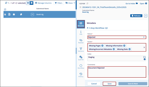 - As a reviewer in the first stage of workflow, claim a document by following steps detailed in the Claim a Document section.