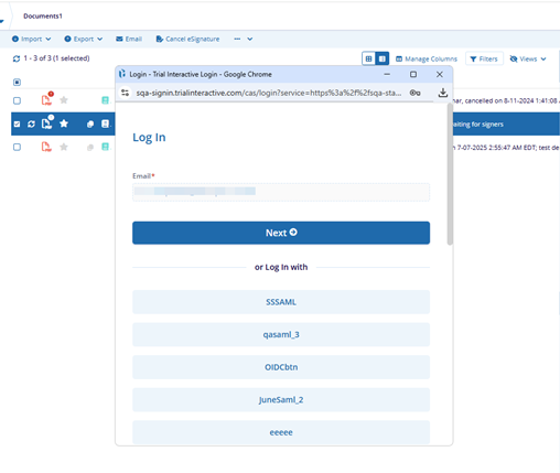 - This selection will display the folder with document statuses that are sent for the user’s eSignature and select the folder that needs to open for eSignature.