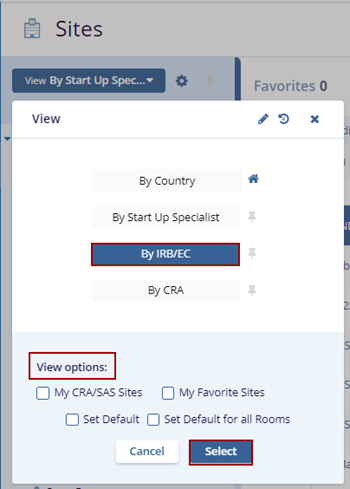 - On the left side of the Sites screen in the index panel click the View By drop-down arrow.