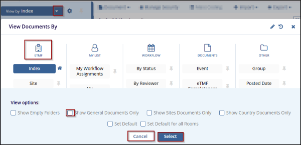- At the top of the Index Pane, the user will see the view bydropdown menu, this allows users to choose how they want to view the documents.