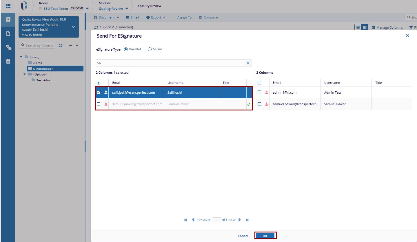 - In the Search bar, enter the names or email addresses of the user who need to sign the document.