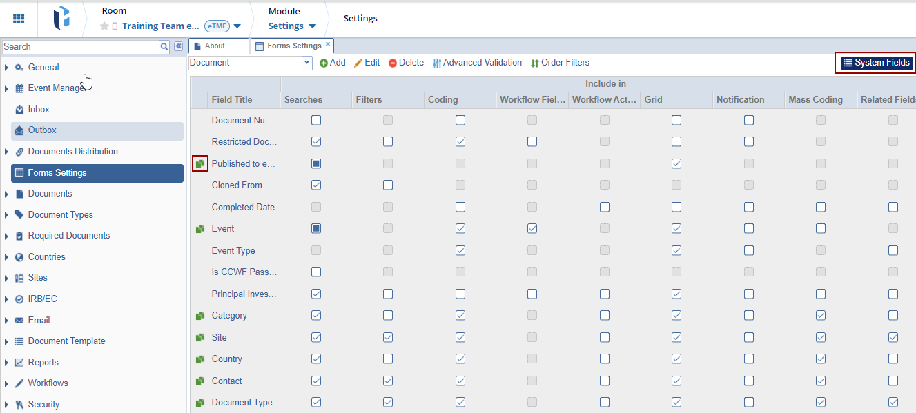 System fields are often non-editable by users and are automatically populated or maintained by the system based on specific actions or configurations. The ‘Green’ marked icon beside the field title name indicates that these field title names are System Fields.