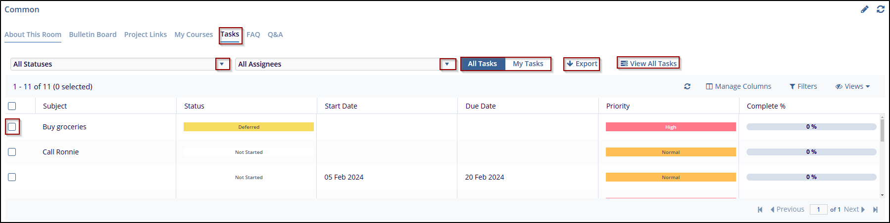 - Navigate to the Common dashboard, and click on the Tasks tab