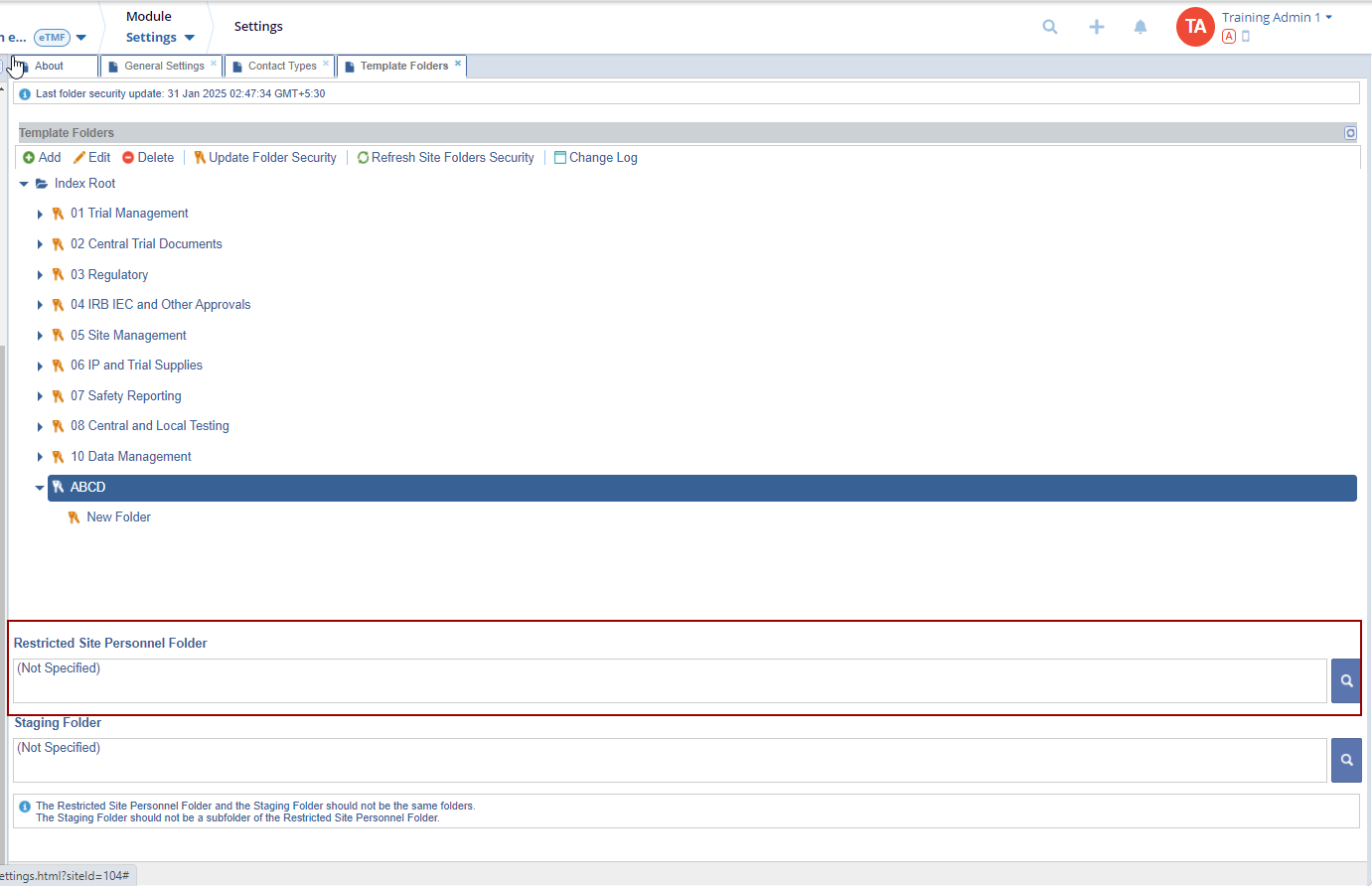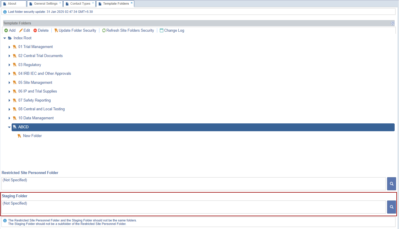 Note: The Restricted Site Personnel Folder and the Staging Folder should not be the same folders.