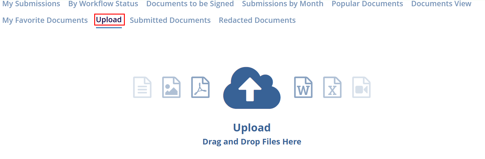 - In the upload section, the user can drag and drop files directly into the designated Upload box or click on drop file and folder to Browse File or Browse Folders to locate files from the system.