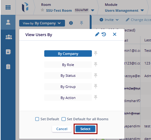 In Trial Interactive, users are categorized for easier access and viewing. You can filter users by different categories using the following steps: