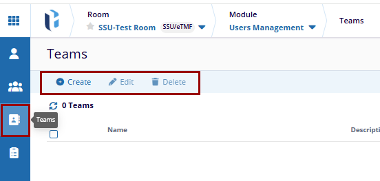 - In User Management, click the Teams icon in the left pane. This will open the Teams