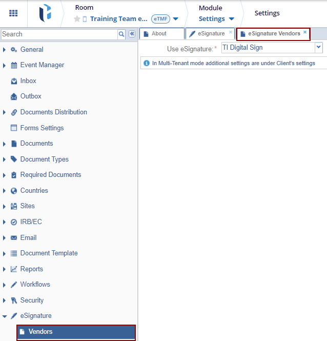 - The e-signature vendor available to the user is determined by the vendor selected by your organization.