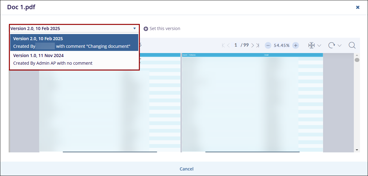Click on the dropdown menu to access the different document versions.