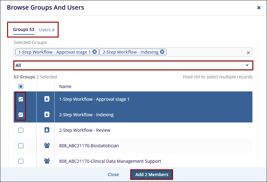 - After selecting the required groups or users, click the