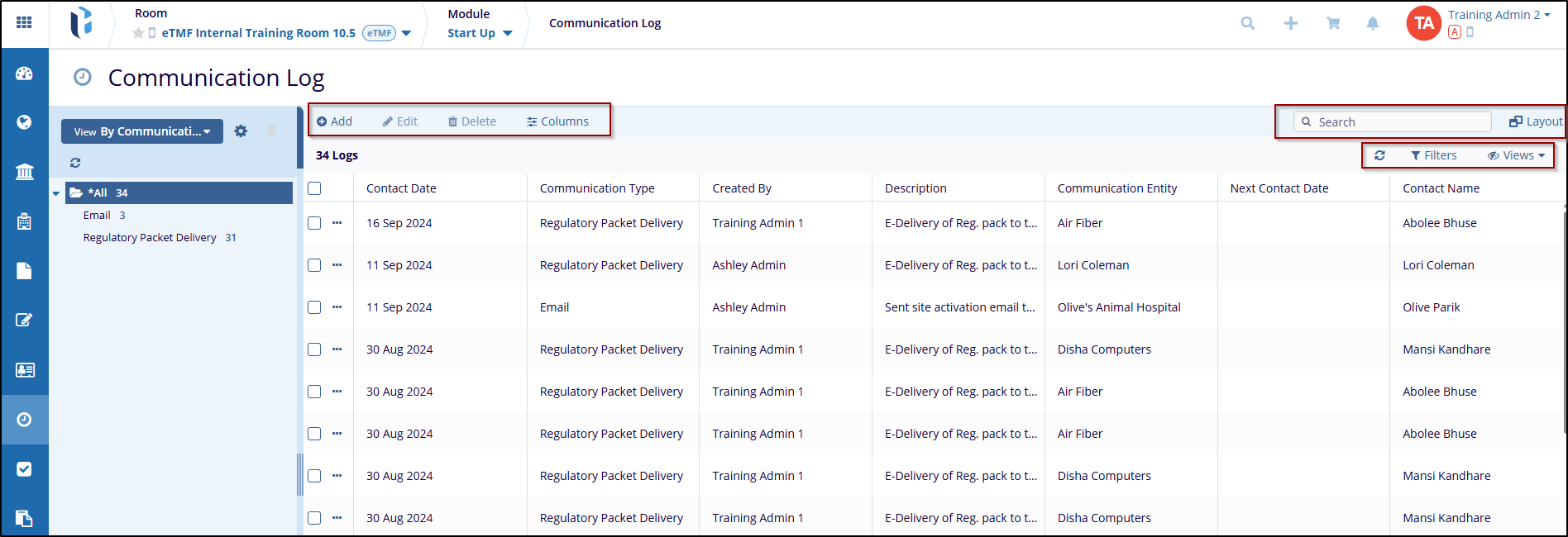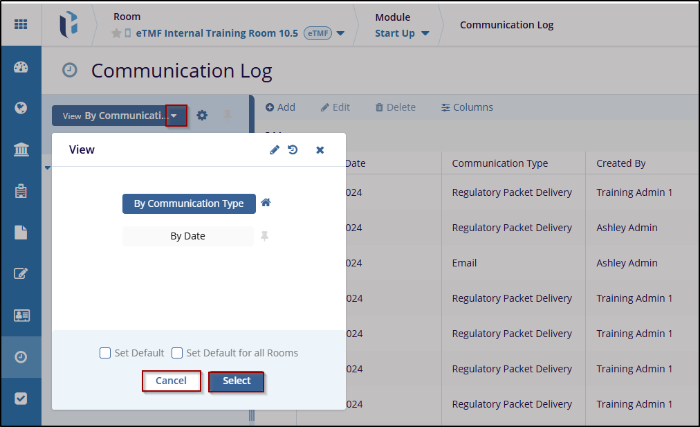 The View Dropdown allows users to select options based on requirements such as By Communication, and By Date.
