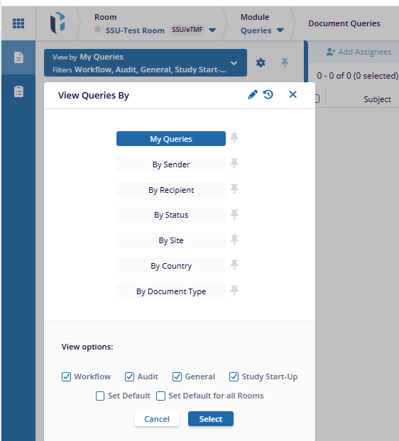 The View Queries By allows users to filter queries based on requirements such as sender, recipient, status, site, or document type. This functionality improves query management by allowing users to focus on relevant information.