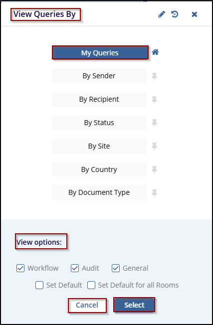 - Select the checkbox as per the user requirement from the View Options section on the View Queries By pop-up window.